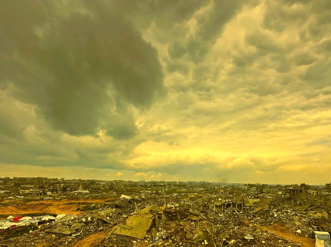 The crackle of static awaiting answer sounds faintly in the ruined place. A breeze stirs up the dust of legions of lost lives, acres of crumpled streets, to begin the patient process of coating this small scene with war’s forgetfulness.